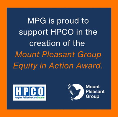 As part of its continued partnership with Hospice Palliative Care Ontario (HPCO), the Mount Pleasant Group (MPG) is pleased to support the Mount Pleasant Group Equity in Action Award—an initiative that aims to shine a light on the vital work being done to promote greater access to hospice palliative care for equity-deserving communities across Ontario. These communities may include, but are not limited to, BIPOC populations, 2SLGBTQI+ individuals, people with intellectual and developmental disabilities, those living with dementia and people experiencing homelessness.