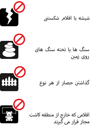 • هر نوع وسیله یا کاشتی که خارج از محدوده مجاز کاشت یک قبر قرار داده شده باشد