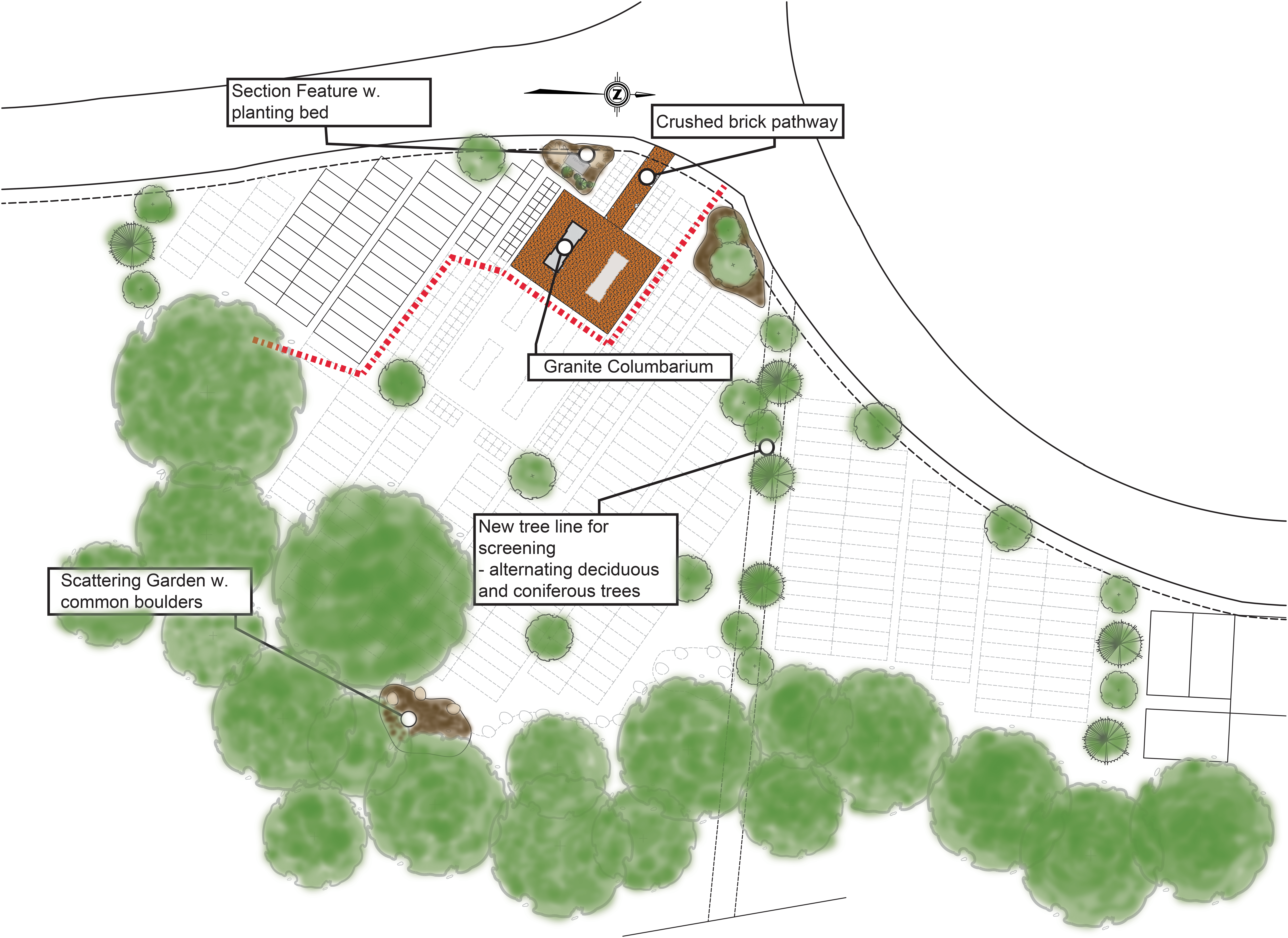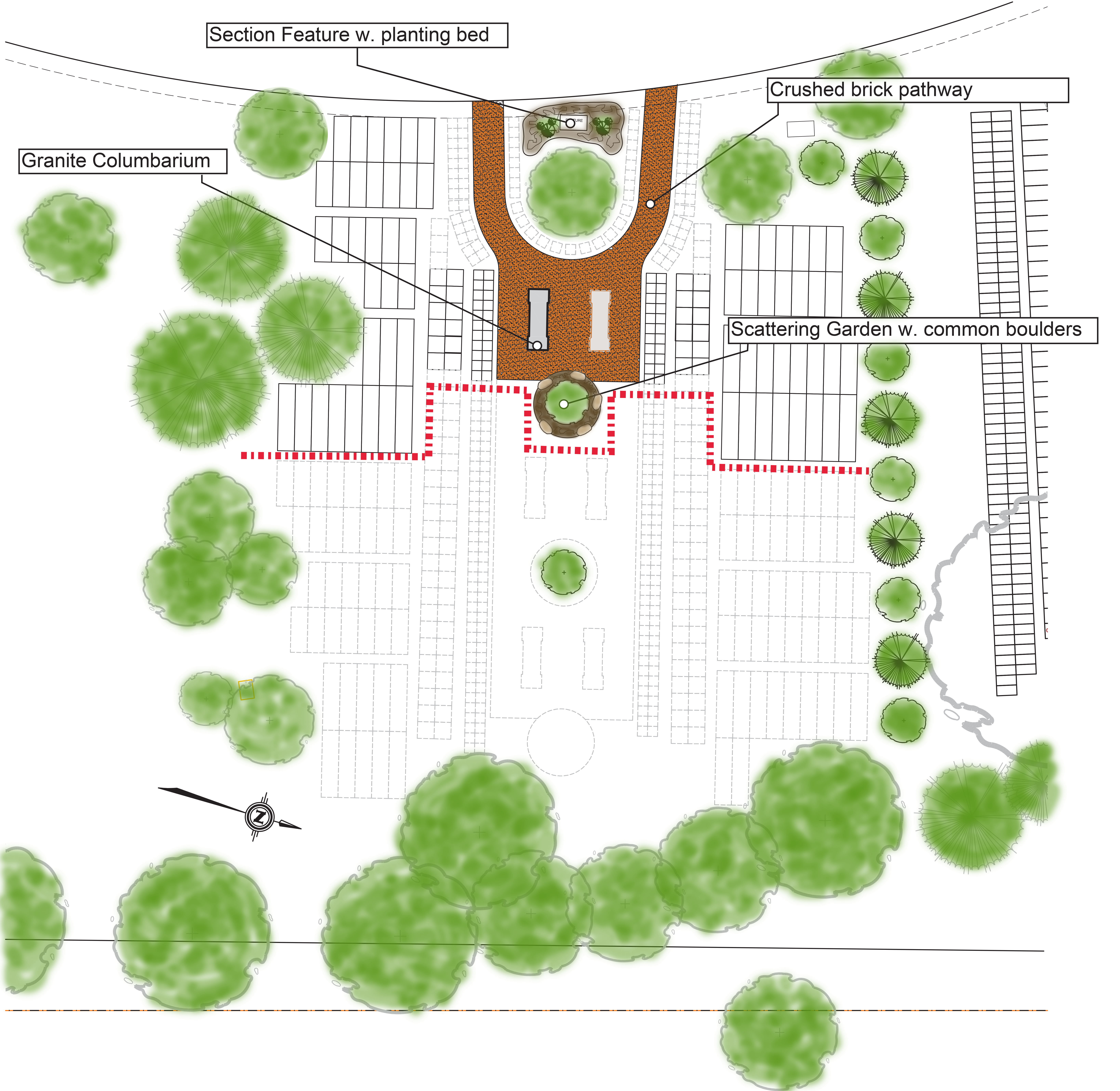 Each of these specially designed sections provide a natural barrier through landscaping from our human only areas within the cemetery.